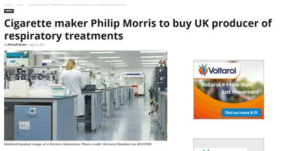 - ↑ M McGrady. Groups Oppose Philip Morris International Purchasing Pharma Company Vectura, 26 July 2021, accessed August 2021