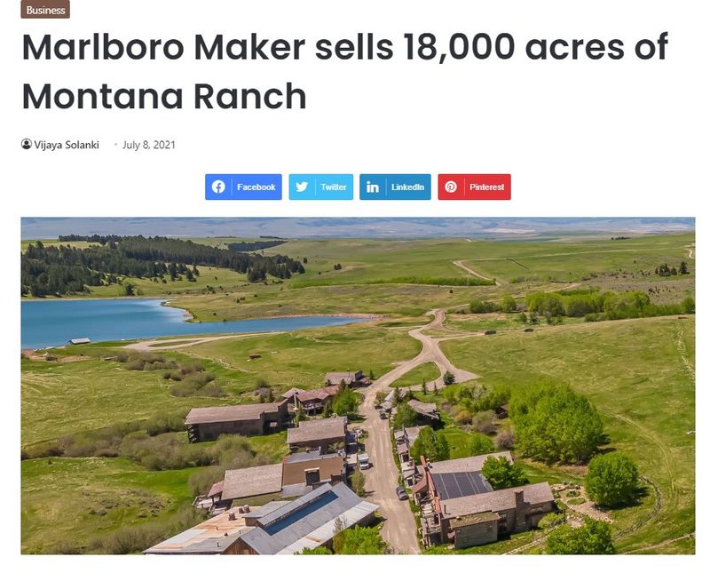 - ↑ 95.0 95.1 V Solanki. Marlboro Maker sells 18,000 acres of Montana Ranch, 8 July 2021, accessed August 2021