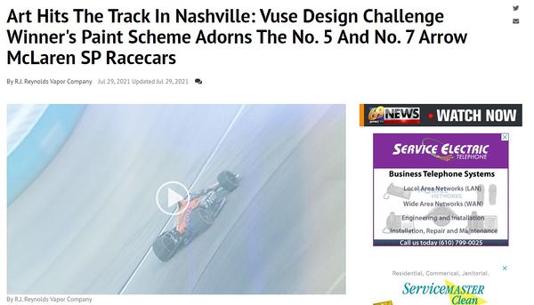 - ↑ 144.0 144.1 69 News. Art Hits The Track In Nashville: Vuse Design Challenge Winner's Paint Scheme Adorns The No. 5 And No. 7 Arrow McLaren SP Racecars, 29 July 2021, accessed August 2021